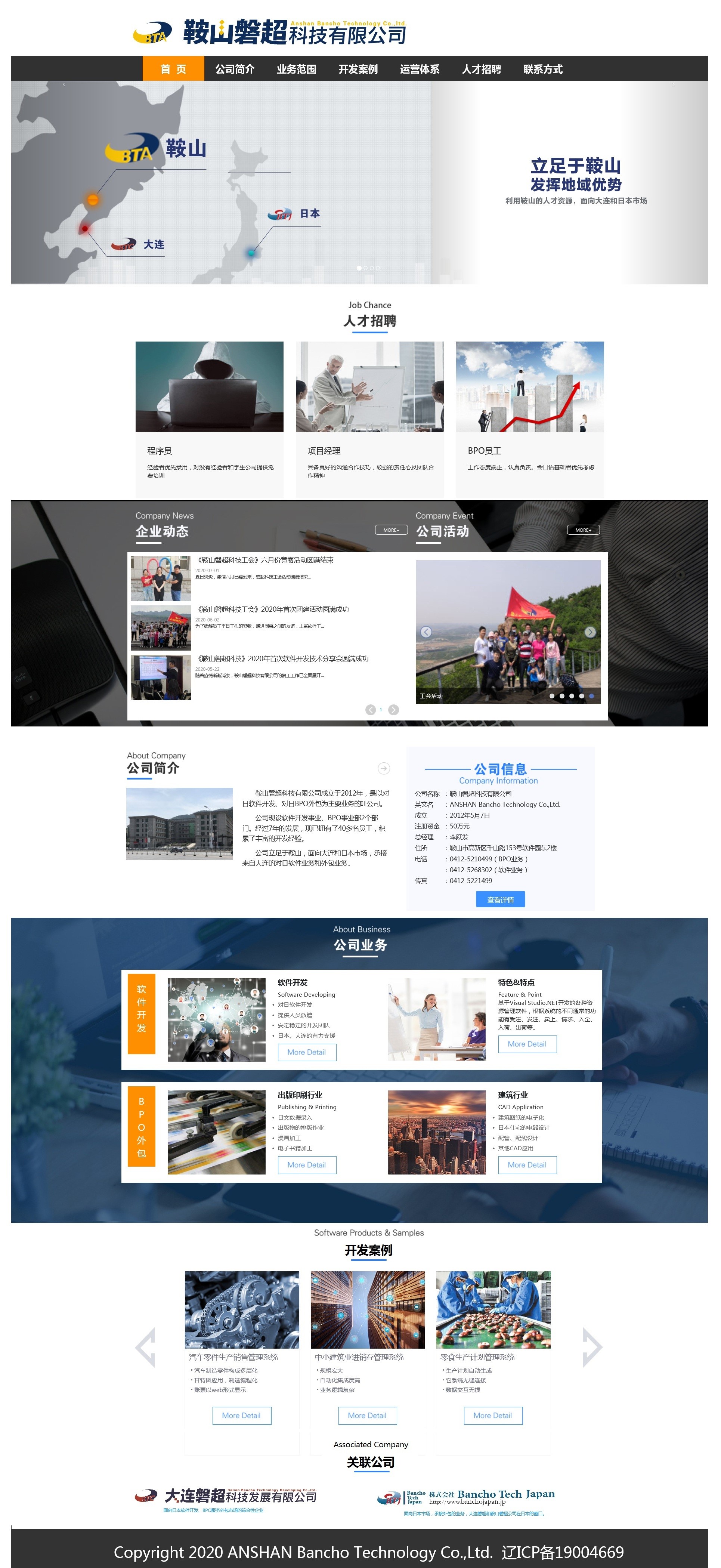 隨著鞍山公司的發(fā)展壯大,為了提升公司對(duì)外信息交流與合作的知名度,搭拓展公司對(duì)外網(wǎng)絡(luò)宣傳渠道,現(xiàn)將鞍山公司網(wǎng)站各項(xiàng)業(yè)務(wù)內(nèi)容豐富并從大連磐超網(wǎng)站中獨(dú)立出來。