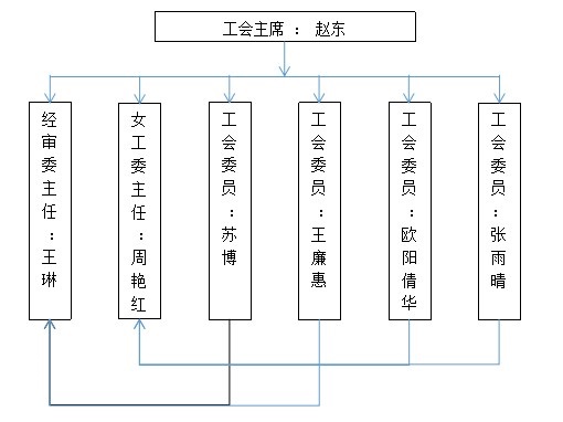 在2019年12月23日召開的首屆第一次職工代表大會上通過直選形式選舉工會主席,工會委員,經(jīng)審委員會主任,女工委員會主任,和委員共計7人。 以下是工會組織結(jié)構(gòu)圖: